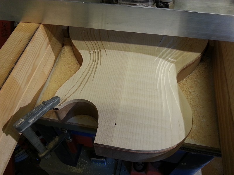 cutaway w les paulu to jedyne miejsce w którym binding nie jest poziomo. Idzie łukiem. Dlatego nie można go frezowaę kiedy top nie jest wyprofilowany (a wtedy najłatwiej to zrobię nie majęc żadnych jigów).