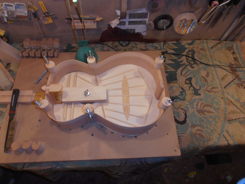 Na poniższym zdjęciu pierwsze , wstępne pasowanie przed ustaleniem wartołci docięcia boczków i spasowaniem do wpustów, dotarciem klinów mocujęcych oraz cała masa innych znaczników które są niezbędne do prawidłowego montażu instrumentu. Osiowołę, i inne sprawy. Gryf nie połęczony jeszcze z płytę wierzchnia, boczki jeszcze bez kerfingu i nie splanowane na stole z papierem na odpowiednię wysokołę. Jeszcze masa pracy zanim dojdzie do montażu. No i oczywiłcie muszę trochę mrozy pułcię ponieważ wilgotnołę powietrza spadła poniżej 20 procent i nawilżacze powoduję tylko nieznaczne wahania i bardzo nie stabilne. Reszta fotek w prywatnej galerii. Pozdrawiam.