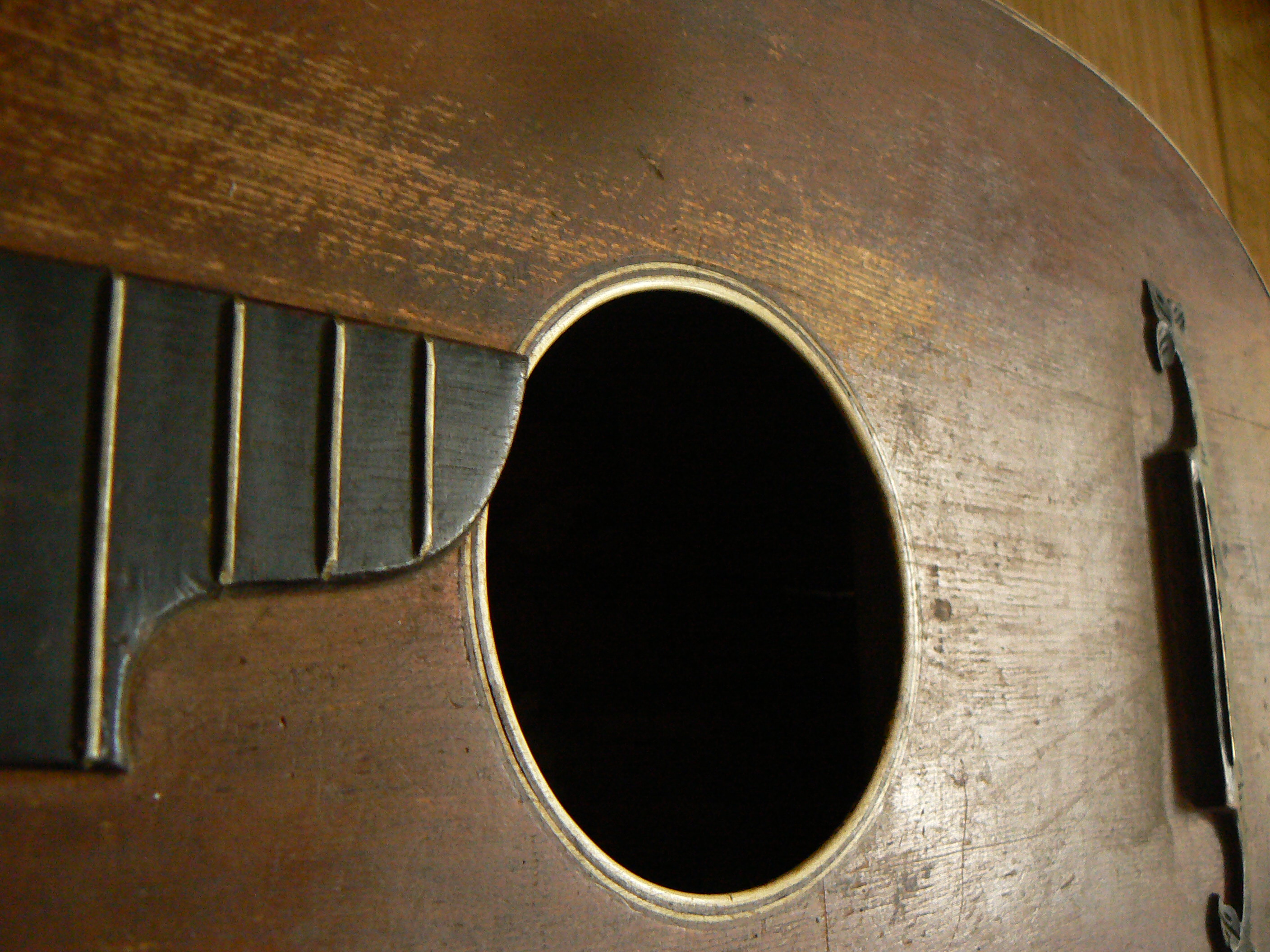 ... A i może rozetkę jakęł wyrzeęšłbię, jak będę miał pomysł. Jej dużym plusem jest (z moich obserwacji) dobrze zachowany prosty gryf, jak na tego typu starocie, co prawdopodobnie da wygodnę akcję strun. Jeżeli uda się przywrócię jej życie, będzie można na niej graę bardziej wymagajęcy repertuar. Wrzucam kilka zdjęc stanu poczętkowego. W miarę postępu, jak czas pozwoli, będę dorzucał przebieg prac renowacyjnych, może uda się zrobię mini fotorelację.