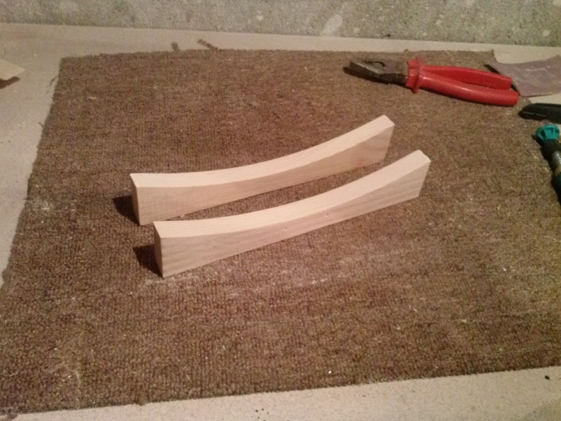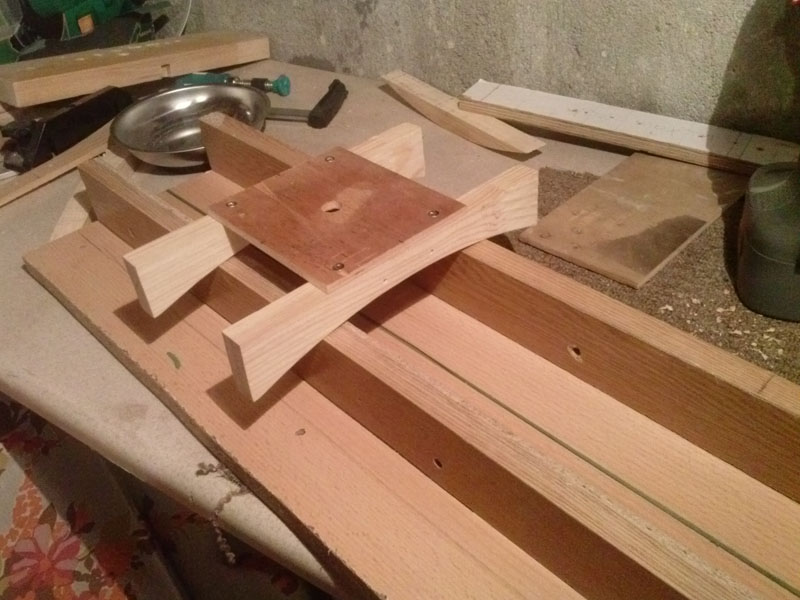 Przyciąłem deski, odrysowałem łuki i zgrubnie wyciąłem na taśmówce. teraz przyszła kolej na ich dokładne wyrównanie frezarką.