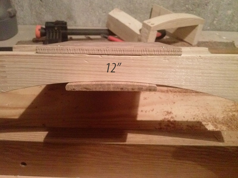 Łuki zamocowane do sklejki do ktorej przymocuje frezarkę.