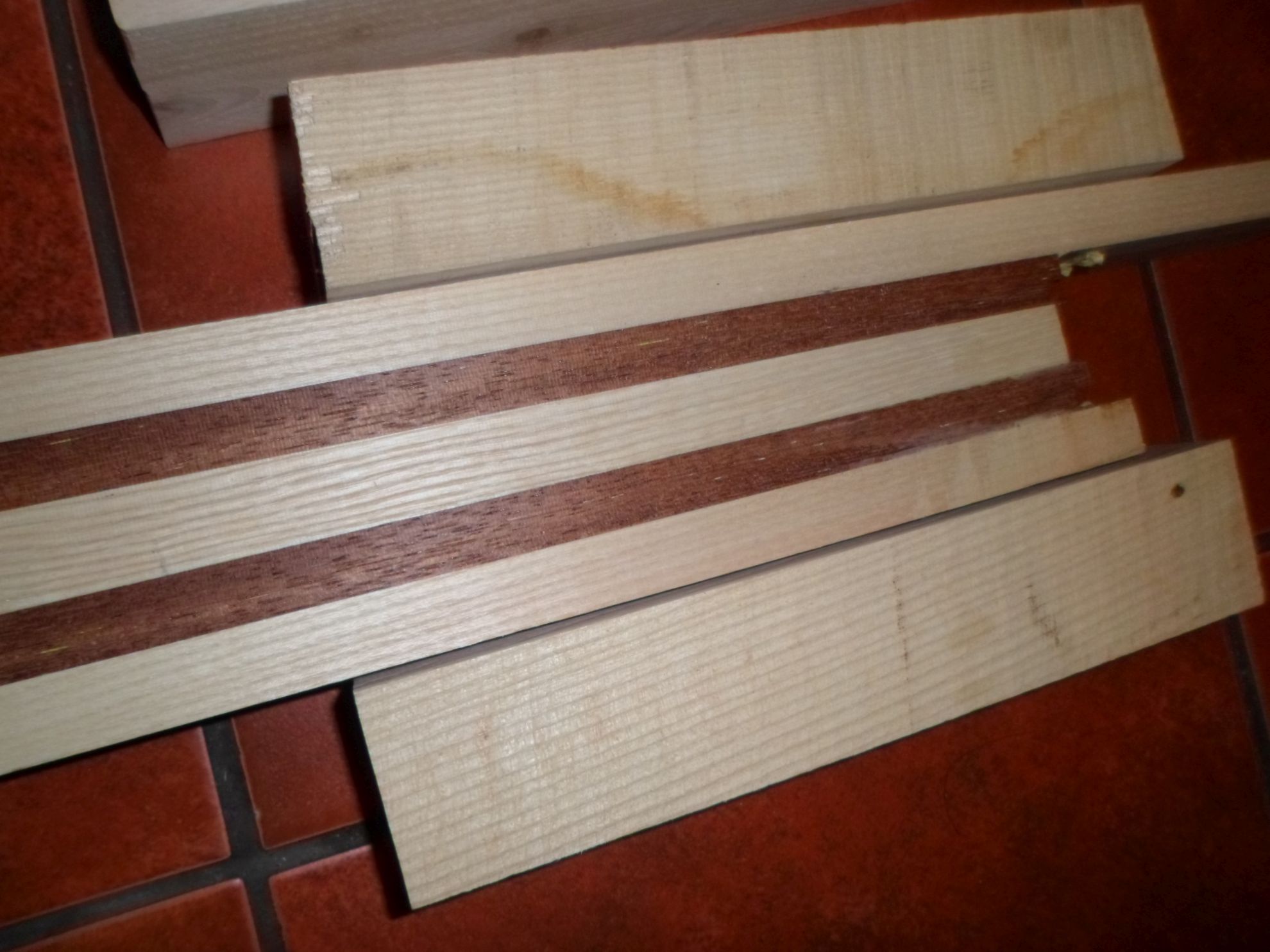 Witam sprzedam trzy korpusy i dwa gryfy wszystko 44mm grubołci.Jesion polski z tartaku wycięty w borach tucholskich jatoba to nie malowany panel podłogowy paski o szerokołci 15mm. Wszystko promieniłcie jakoł nie wieże że gitara może niemieę słojów prostopadłych do strun a już w szczególnołci na gryfie. Rok temu pokleiłem titebond original wood glue od tego czasu materiał leży na szafie i graci. Gryfy będę raczej za węskie na cztery struny. wszystko wyda na elektryka.70 korpus 60 gryf