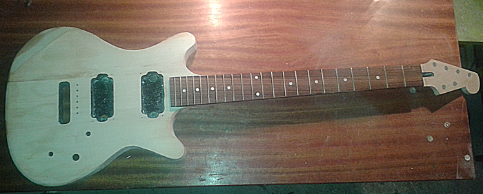 7. Nad elektronikę zastanowię się, jeżeli po złożeniu drewna z założonymi strunami będzie jakoł grało i odchudzony gryf nie pęknie. Komora na elektronikę pomiełci ze cztery potencjometry i ze dwa przełęczniki. Na pewno trzeba ekranowaę wszystkie komory.