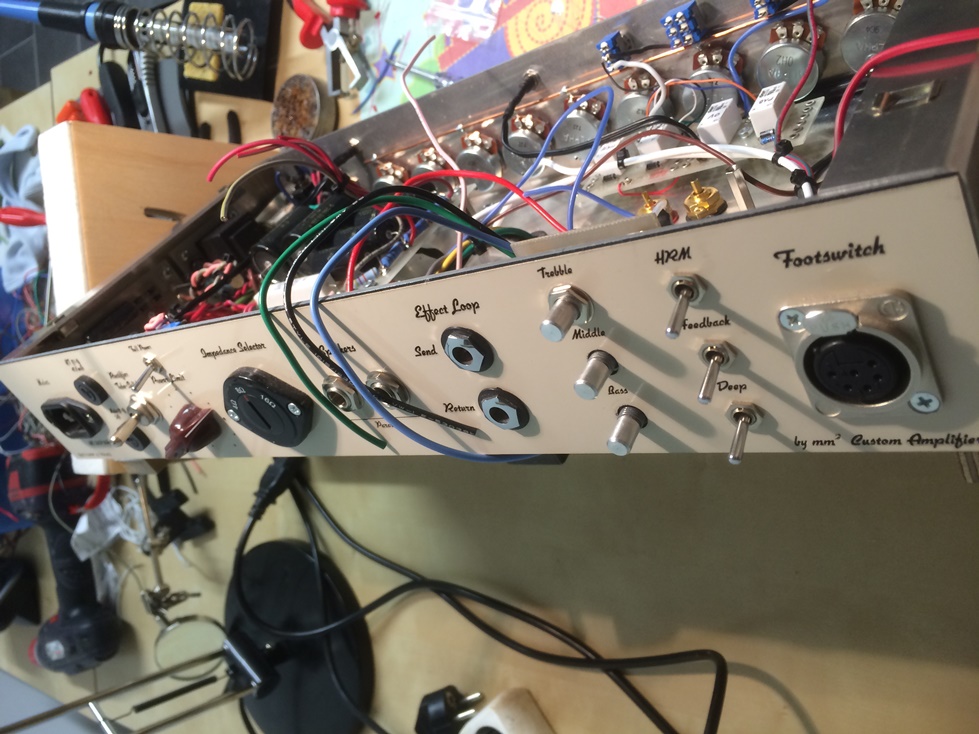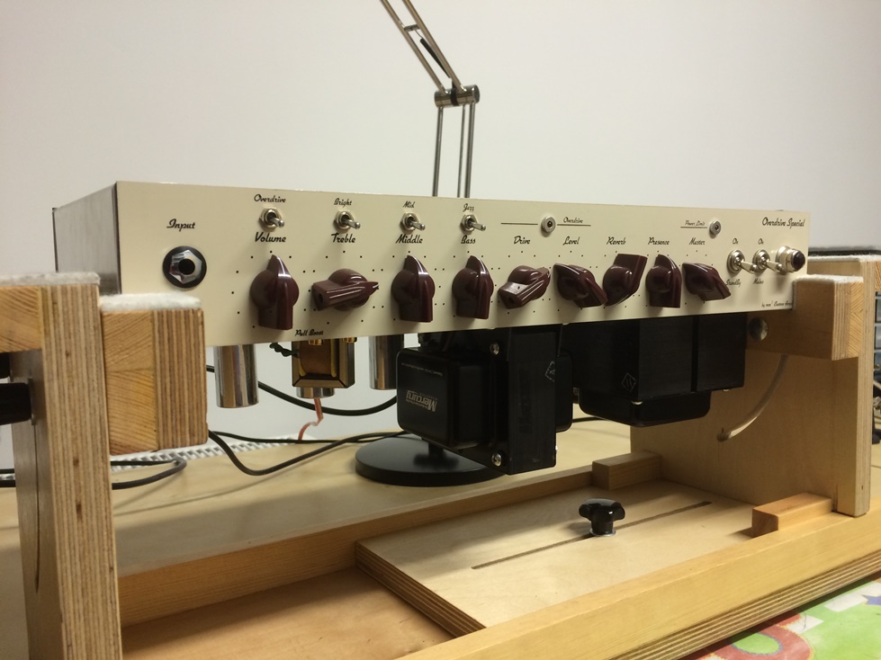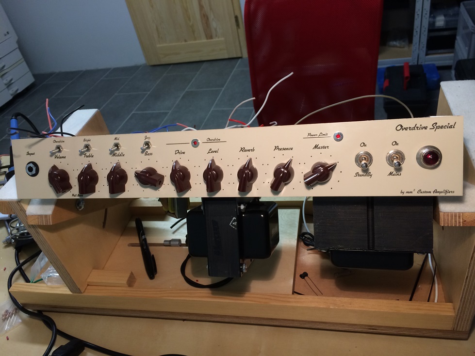 Podstawowym złożeniem było stworzenie konstrukcji mniejszej niż klasyczny 100W Dumble, dodatkowo z regulowana mocę (power scalling). Opcje dodatkowe to: wszystkie przełęczniki dostępne w oryginalnym przedwzmacniaczu Dumble ODS, reverb sprężynowy, możliwołę załęczenia dodatkowego equalizera HRM. Wszystkie częłci jak najlepszej jakołci i zbliżone do oryginalnych. Trafa mercury magnetic.