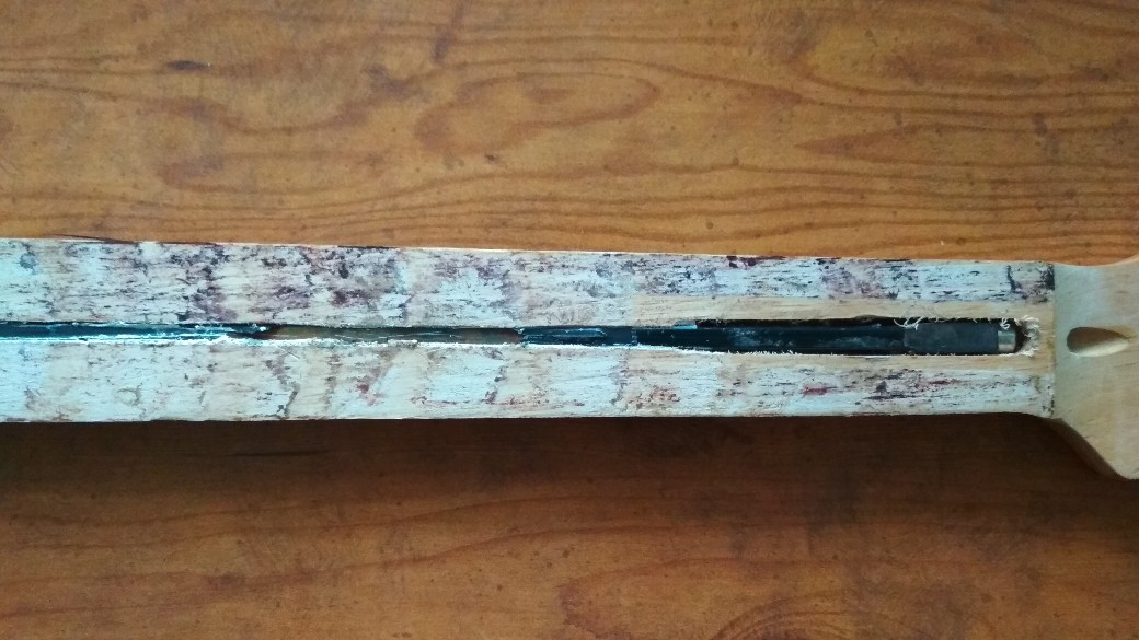 Ostatnio miałem podobny przypadek na warsztacie i po prostu zdjęłem podstrunnicę i wstawiłem pręt dwustronny.