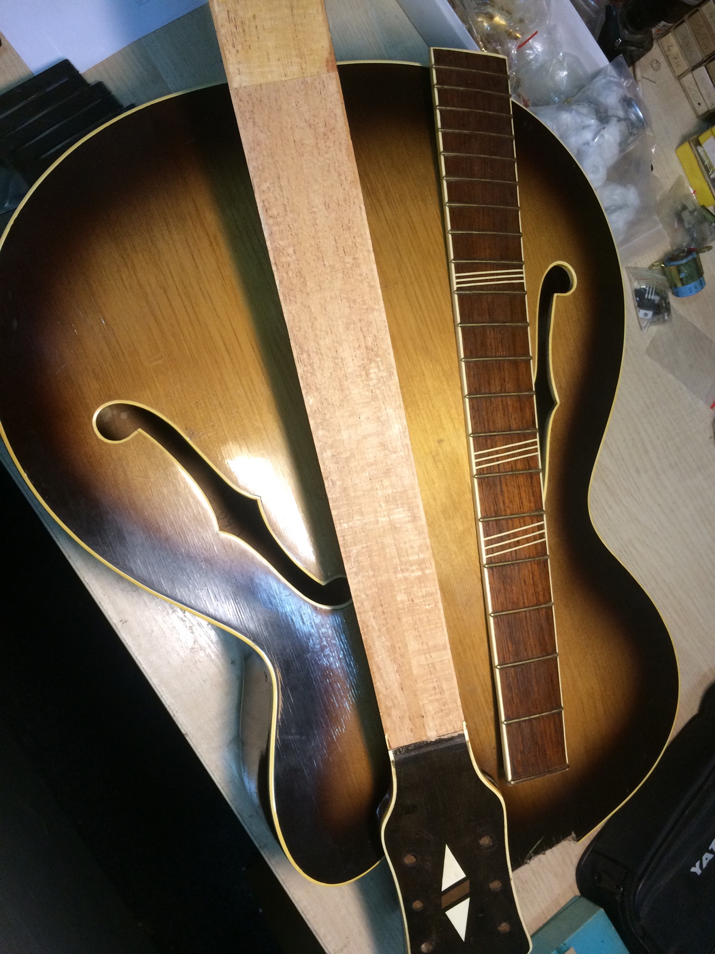 Wpadła mi w ręce gitara typu hollowbody Lignatone, a że lubię tego typu zabawki to chciał bym zrobię z niej wypełni grywalny instrument.