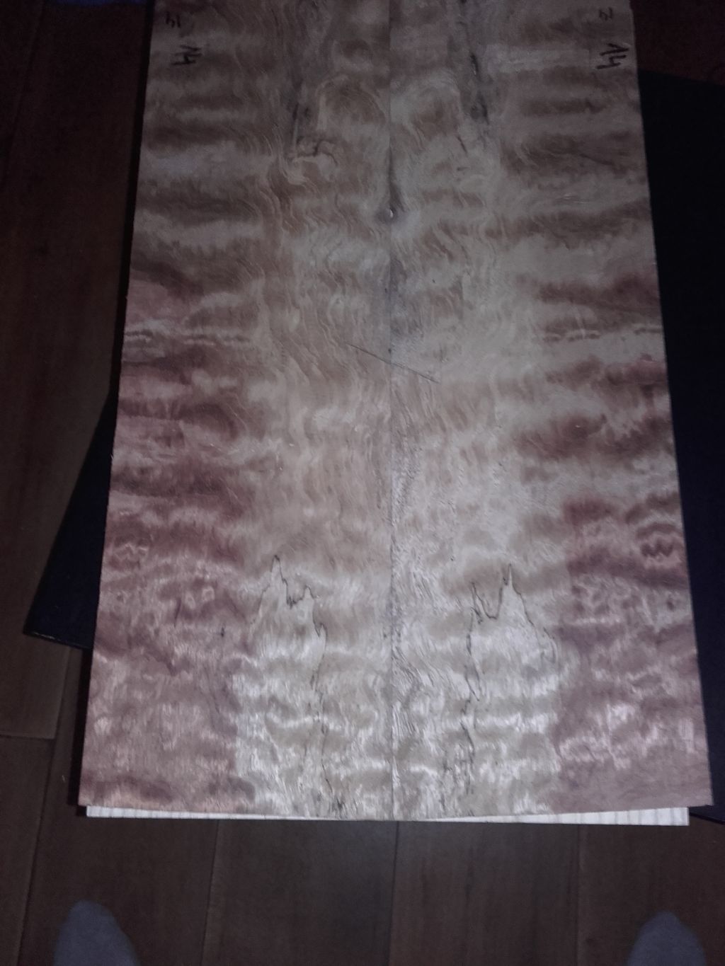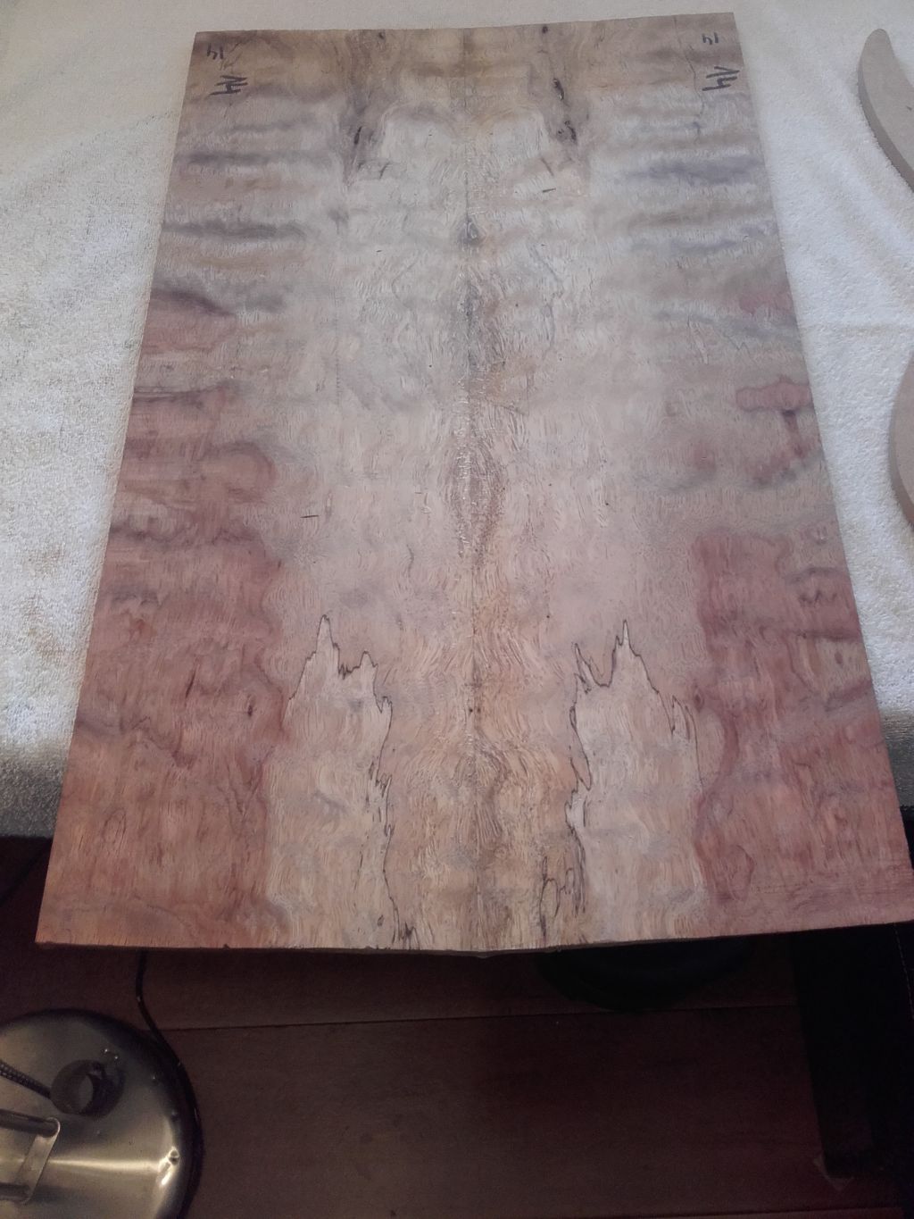 Klej zaaplikowany. Top po złożeniu jest w kształcie małego klina listwa pod małym kętem.Dobite na wcisk. Potrzebowałem tylko mocowania aby top nie poszedł w górę. Top po sklejeniu. przed szlifem. Szablon z mdf na topie. Trochę rożni się od wizji jaki była wyżej, ale trochę kopnięta góra jakoł bardziej mi przypasowała wizualnie.