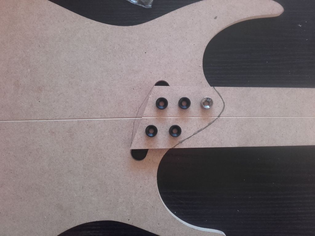 korpus i częłę gryfu orientacyjne rozmieszczenie podkładek pod wkręty i reszta na pokładzie Jak myłlicie czy konieczne jest przeprojektowanie i dorzucenie więcej pod gryf czy może to zostaę?