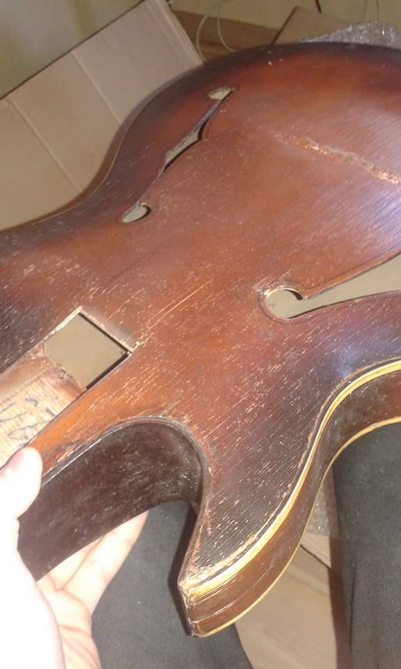 Tej gitary chyba ktoł kiedyś używał jako leworęcznej, stęd to wycięcie w pudle. Gratulacje za wytrwałołę.