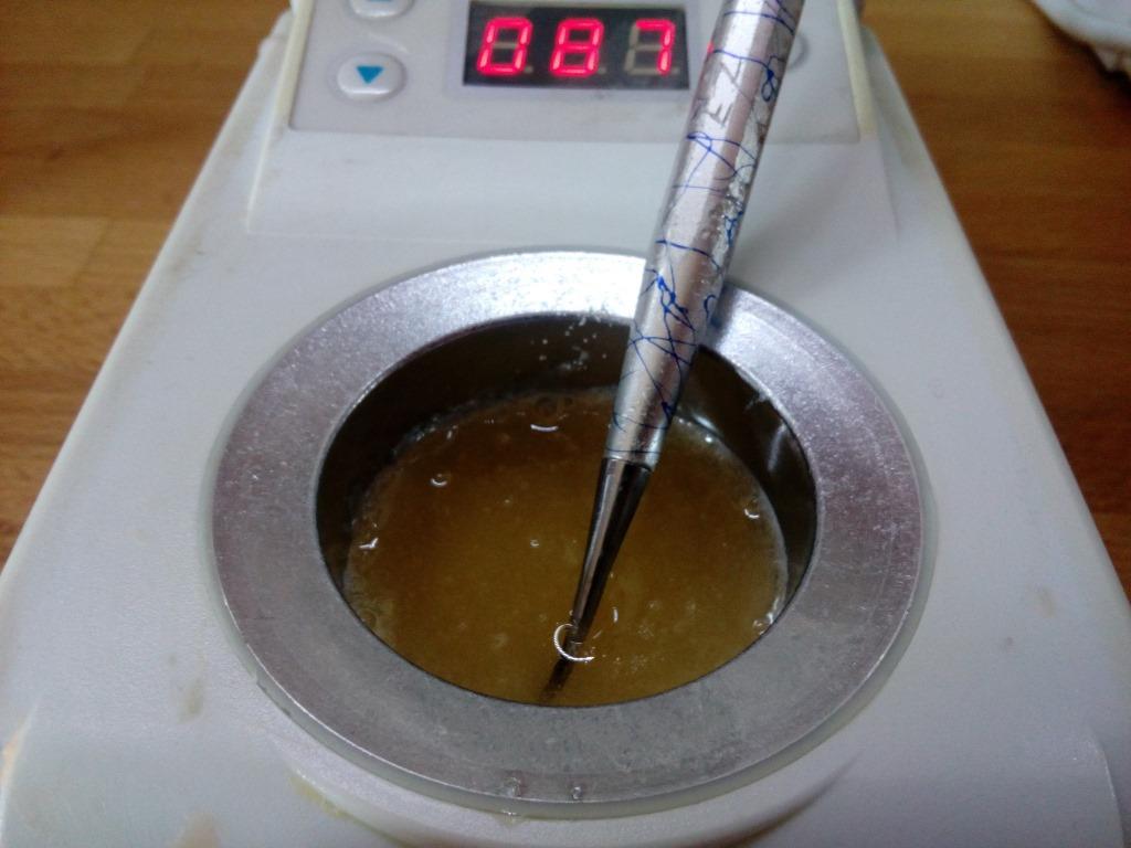 Klejenie złamania klejem z żelatyny, mam tygielek ok 40ml z regulację temperatury do 200 C.