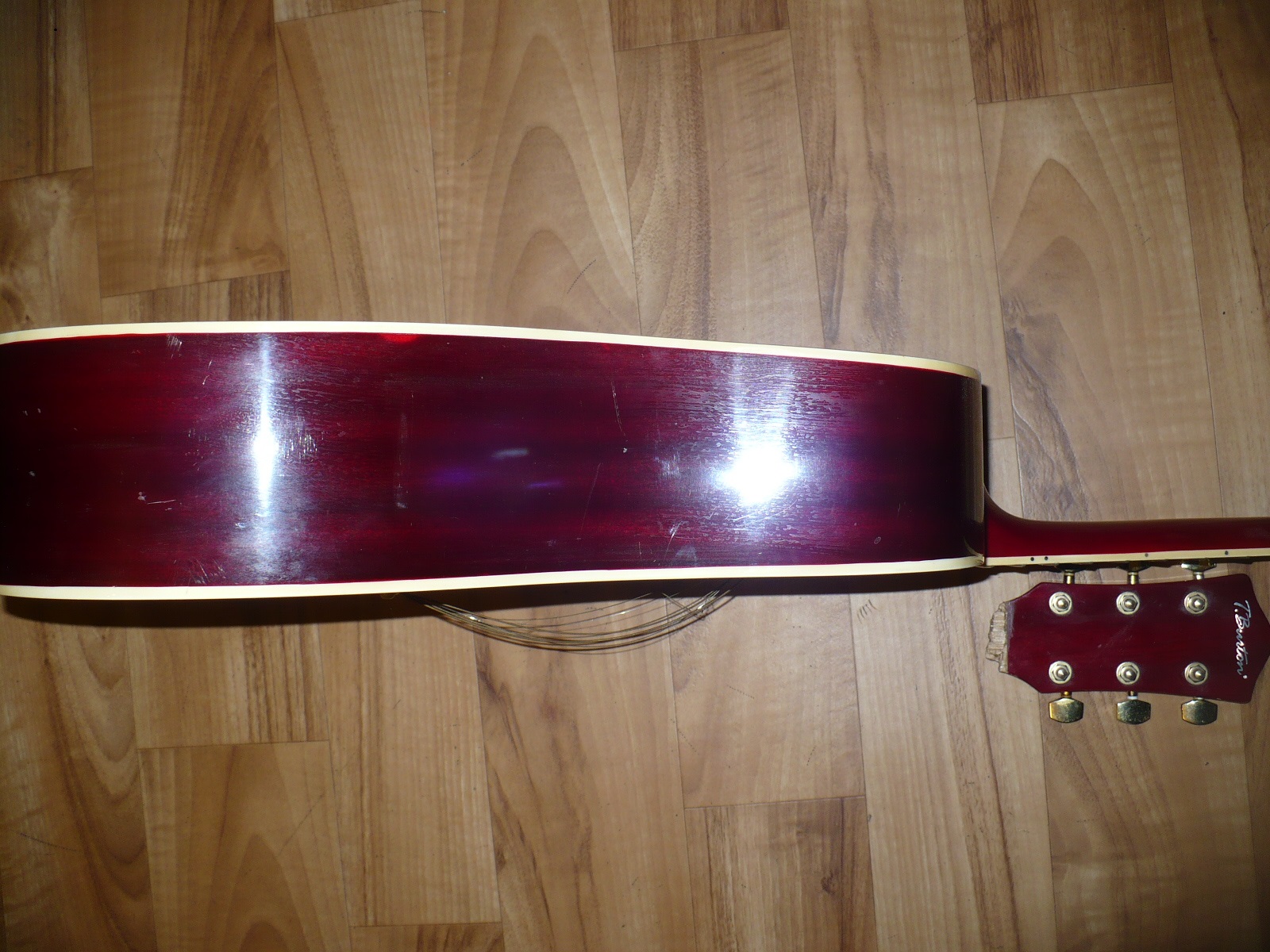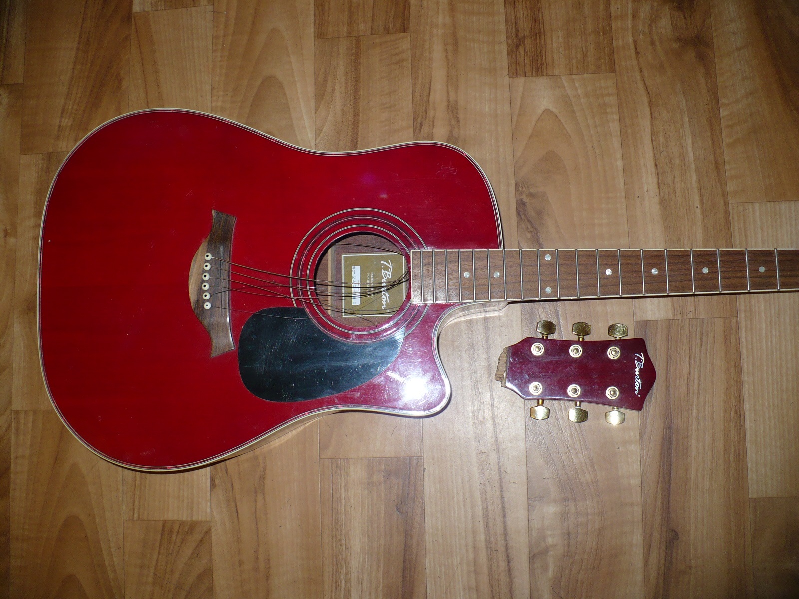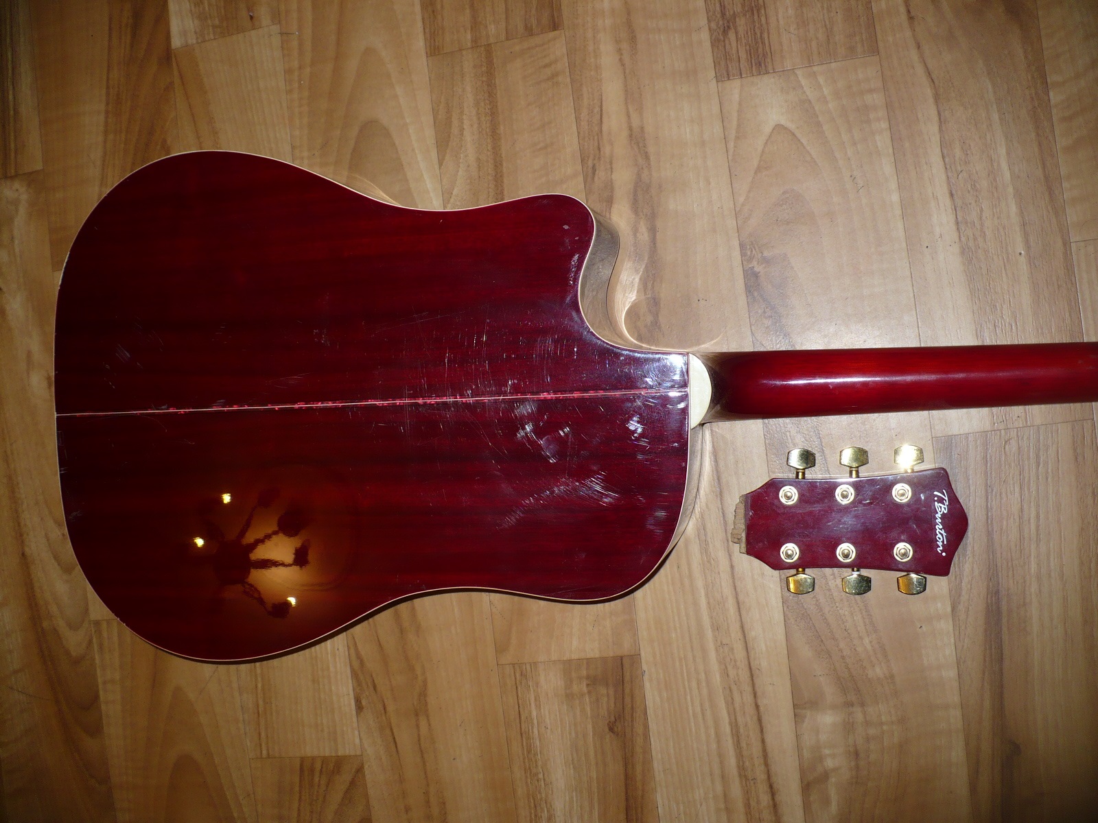 Sprzedam gitarę T.Burton W-24C-TRD mahoł, łwierk, sklejka. Gitara współczesna na wysoki połysk. Szyjka jest złamana prawie na równo. Najgorsze wręcz tragiczne jest to że ktoł próbował ję wlepię na przezroczysty silikon. Może ktoł będzie chciał naprawię, albo na częłci.