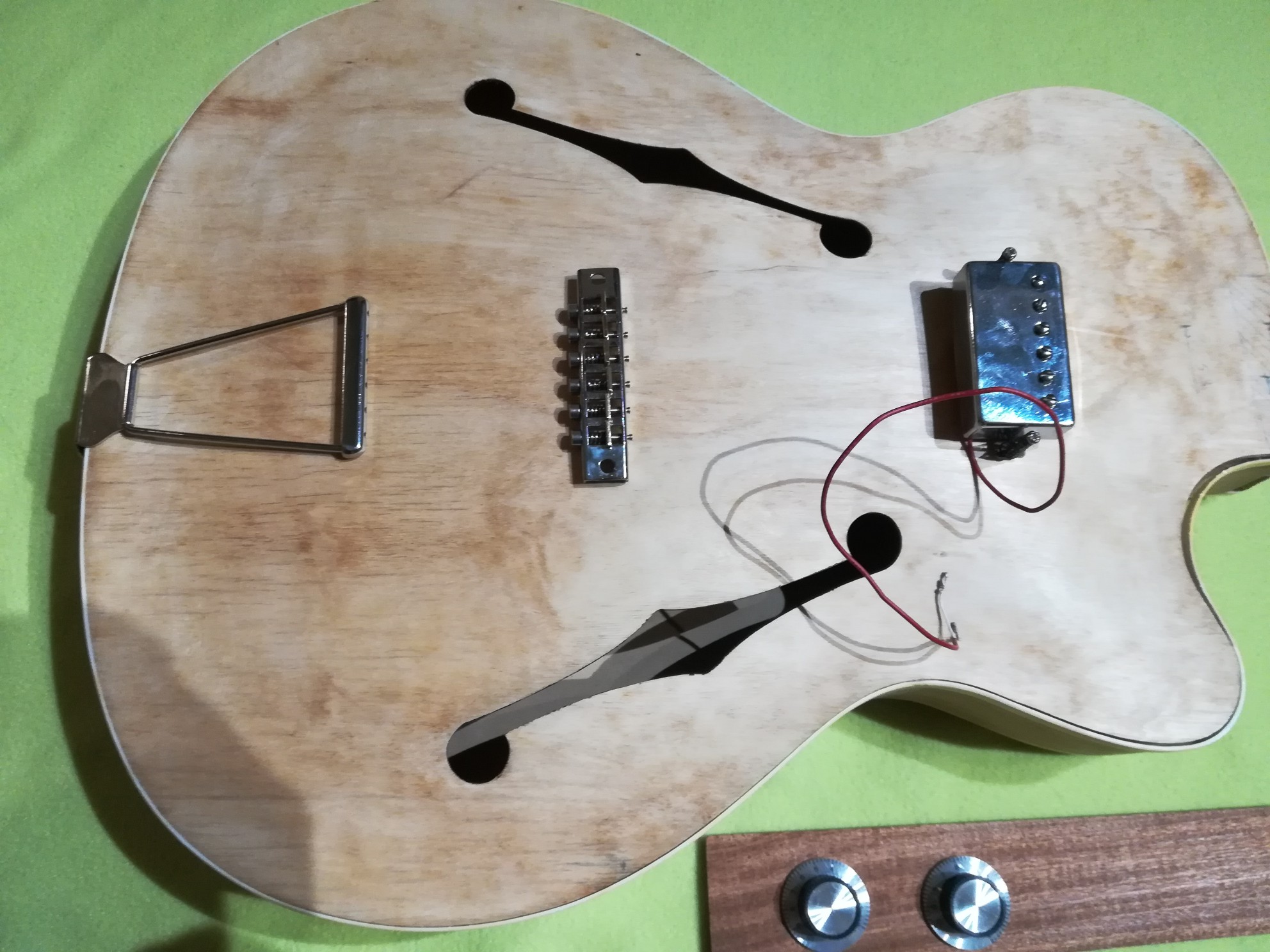 Mój korpus nie posiadał nigdy elektroniki a ponadto sposób łęczenia z gryfem jest dla mojego projektu raczej niekożystny.