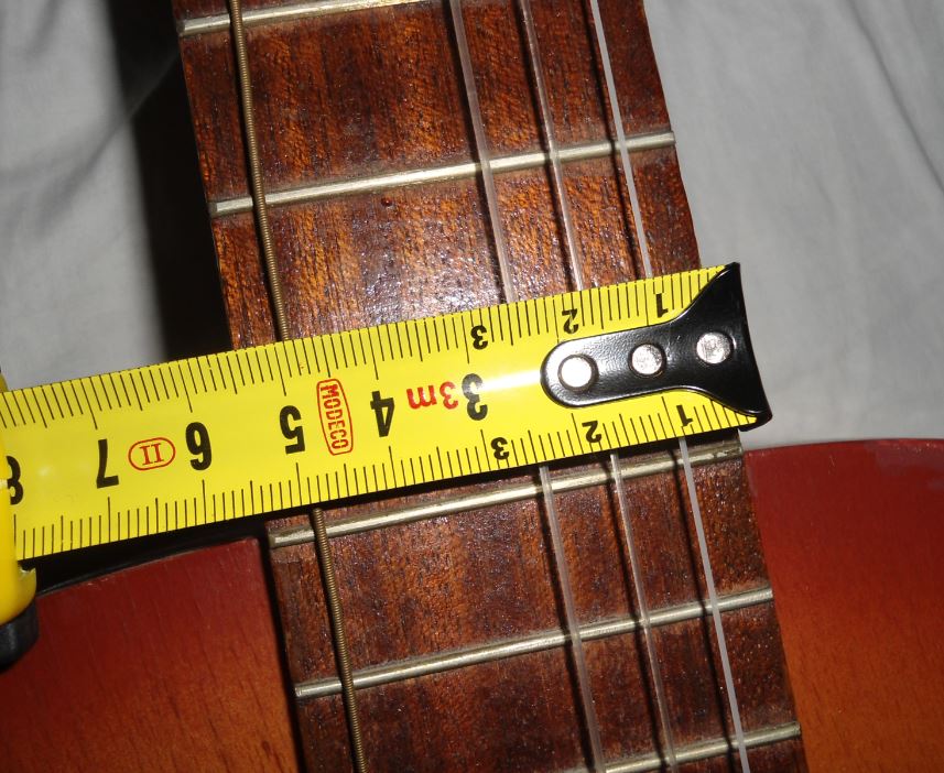 Jest to gitara młodzieżowa t zw. szkolna, takie miały nazwy tanie instrumenty Defil do nauki w szkołach. Były to namiastki klasyków i fabrycznie zakładano struny nylonowe. Metalowe zakładali "harcerze" aby głołniej brzmiały a potem narzekali, że kiepska gitara, bo się szyjka zgięła w banan. Wyględa mi na 3/4, stęd i mniejsze pudło aby dzieciom się wygodniej grało.