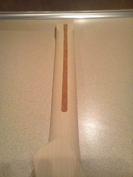 No panowie wyględa na to,że operacja się udała i pacjent żyje i ma się raczej dobrze. Podejrzewam,że będzie też lepiej wyględał z ciemna wklejkę :) Pomysł z ustawieniem wg główki się sprawdził Rysiu. Jutro raczej nie będę miał czasu zejłę do warsztatu, ale pojutrze się wszystko okaże ;) Aha - zastosowałem jednak opcję dwa gdyż dawała mi idealne krawędzie nowego rowka i tym samym wklejka ładnie pasuje ;)
