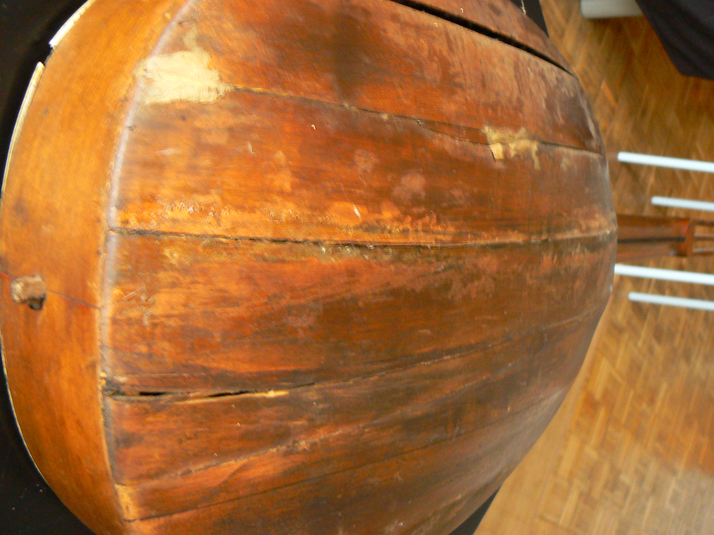 ... A i może rozetkę jakęł wyrzeęšłbię, jak będę miał pomysł. Jej dużym plusem jest (z moich obserwacji) dobrze zachowany prosty gryf, jak na tego typu starocie, co prawdopodobnie da wygodnę akcję strun. Jeżeli uda się przywrócię jej życie, będzie można na niej graę bardziej wymagajęcy repertuar. Wrzucam kilka zdjęc stanu poczętkowego. W miarę postępu, jak czas pozwoli, będę dorzucał przebieg prac renowacyjnych, może uda się zrobię mini fotorelację.