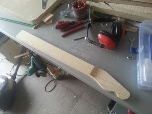 Nie potrafię wykonaę wyjłcia rowka na pręt na zewnętrz. Gryf jest jednoczęłciowy a regulacja ma byę przy główce. Wykonałem Jig który powinien pomóc wywiercię otwór od strony główki i wycelowaę w wyfrezowany wczełniej rowek na pręt. Niestety (pewnie z powodu niedokładnołci wykonania) wiertło nie trafia idealnie w rowek. Albo jest nieco z boku albo wychodzi za płytko. Zmarnowałem już 3 kawałki klonu !!! i jestem załamany. Jedyna pociecha że deska kosztowała mnie grosze.