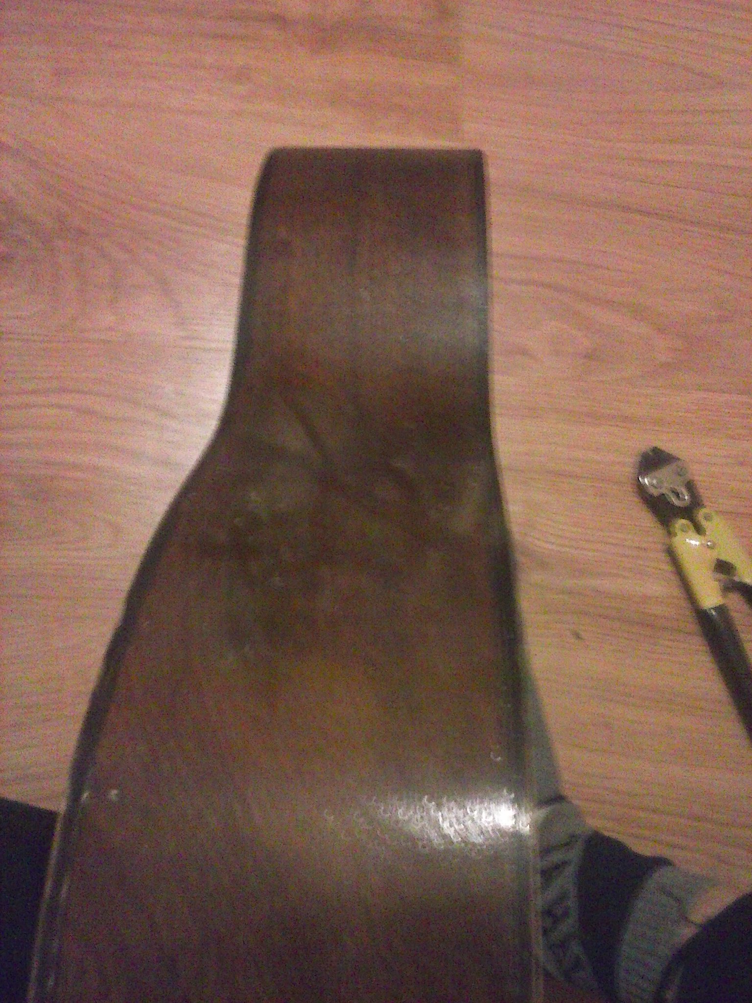 Flaszkę będę pił na weekendzie. :) Wycięgnęłem dził te nędzne klucze. Wgl Siodełko samo odpadło. :) Nie mam, chyba wystarczajęco dużo sprzętów/narzędzi by wykonaę gryf, tak samo niestety nie mam drewna. :( Nie można tego gryfu jakoł wykorzystaę? Przesyłam zdj po wycięgnięciu kluczy.