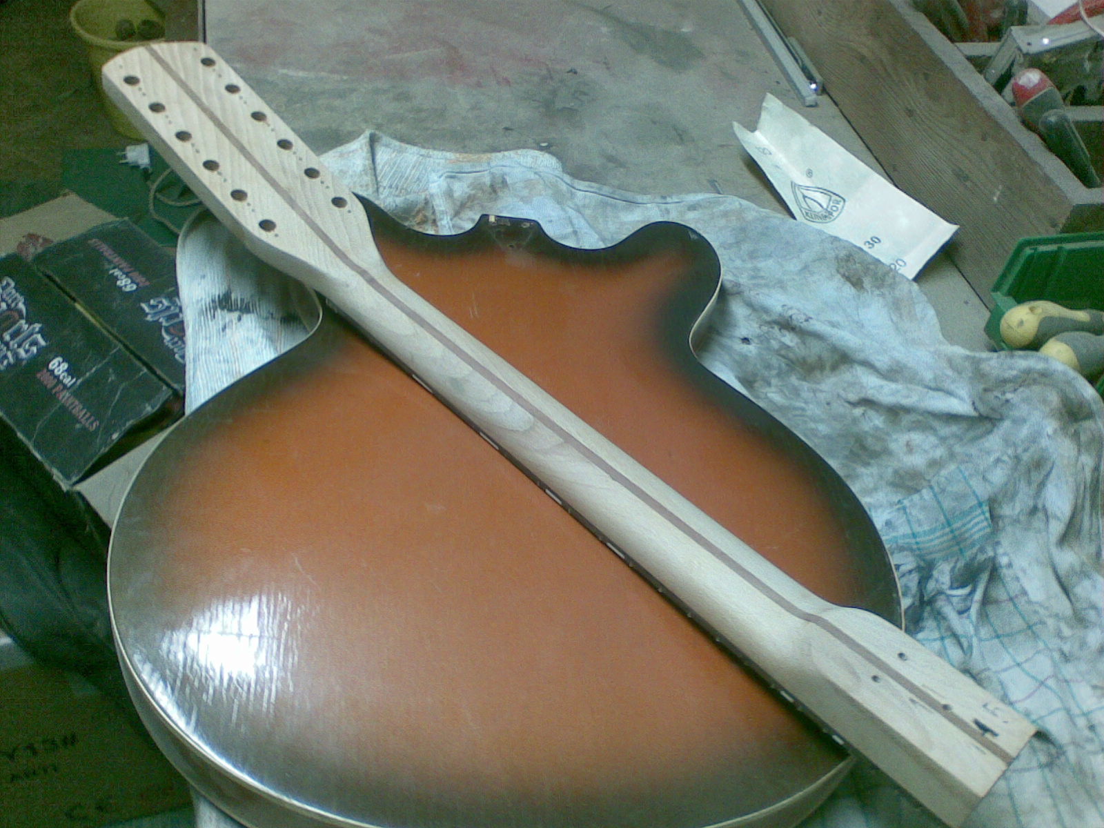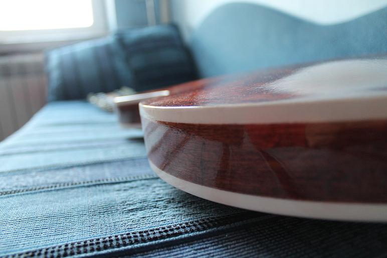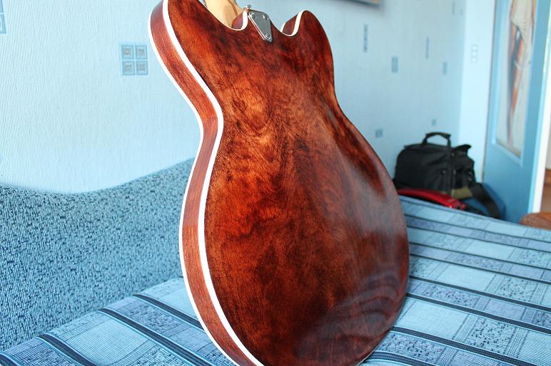 Wykonywanie cieniowania w Defilu odbywało się, jak i obecnie odbywa się w fabrykach gitar takich jak Gibson, Fender, etc, nie poprzez bejcowanie - co zauważyłem że jest dołę powszechne włród amatorów - ale przez malowanie barwionym lakierem. Bejca wnika głęboko w drewno, podnosi włókna, trudniej poprawię ewentualne błędy.