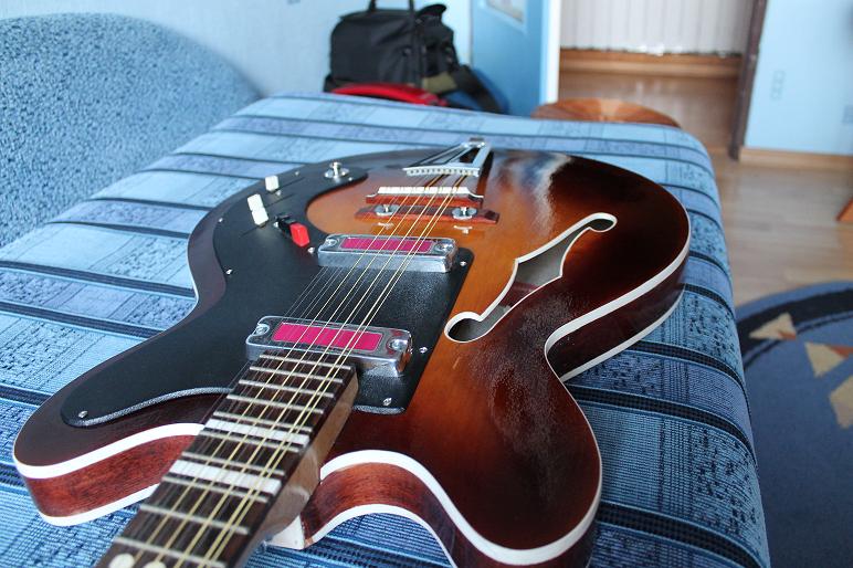 Nie dawno zakołczyłem prace nad drugim moim defilem którego odziedziczyłem po ojcu. Dołę długo zabierałem się do tego projektu głownie z braku podstawowych częłci gitary,a ogólny zamysł mówił 100% orginał. Jak widaę częłci udało się nabyę a wtedy prace ruszyły. Najwięcej pracy poszło na wyględ nowy sunbrast w sumie mój pierwszy osprzęt pochromowany na nowo, piguard oklejony folię termoplastycznę,zmienione gniazdo. Tył pomalowany na gładko bejcę nitro mahoł na wszystko lakier bezbarwny połysk nitro. Kilka zdjęę poględowych z postępu moich prac.