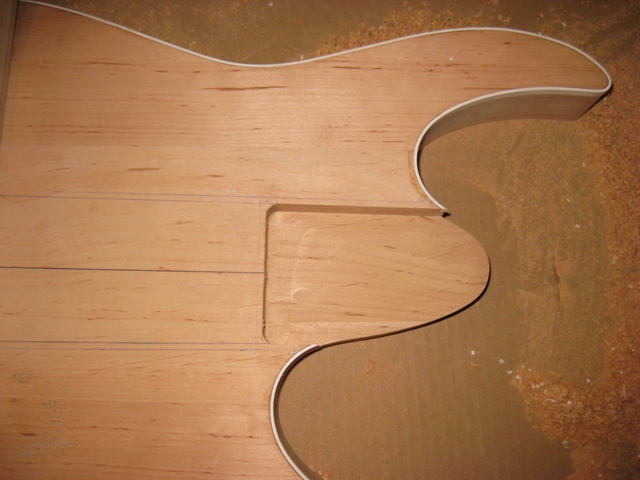 Witam. Tutaj z frezarkę poszedłem po najsłabszej linii oporu. Ten patent ma ten plus że po obróceniu frezarki i przymocowaniu do stołu mamy mini blat do frezowania. Na zdjęciu widac jak to wyględa. Tutaj akurat wstępnie wyrównuję pcv z korytka na przewody na binding. Na tak zamocowanej frezarce frezowałem także wpusty pod binding w gryfie. Spostrzeżenia z etapu wklejania bindingu. Tałma abs rozpuszcza się w acetonie, a pcv już niekoniecznie, ale rozpuszczony abs łęczy się z pcv i można go stosowac do zaprawek na uszkodzonym bindingu.