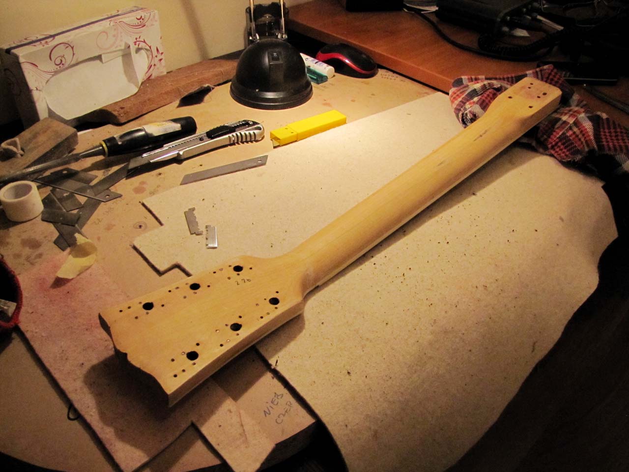 Odnoszę wrażenie, że jednak będzie potrzeba wymienię progi, a to by załatwiło usuwanie starego podbarwienia podstrunnicy i ew. pomalowanie (czy potrzebne?).
