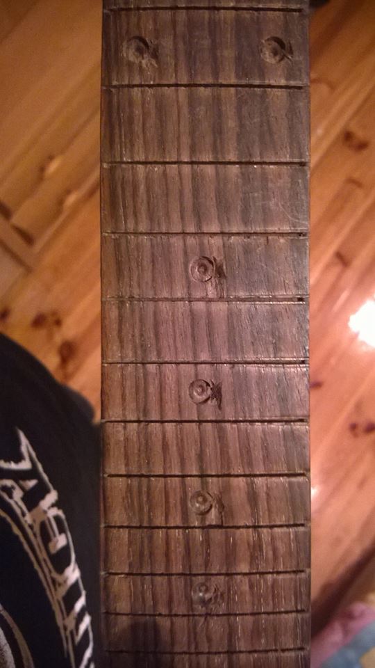 Nie ma sensu wypełniaę ubytków w podstrunnicy ,będzie rzecz widaę. Jedyna możliwołę to zrobienie nowych markerów . Poogladaj sobie w mecie czym się da te stare zastępię.