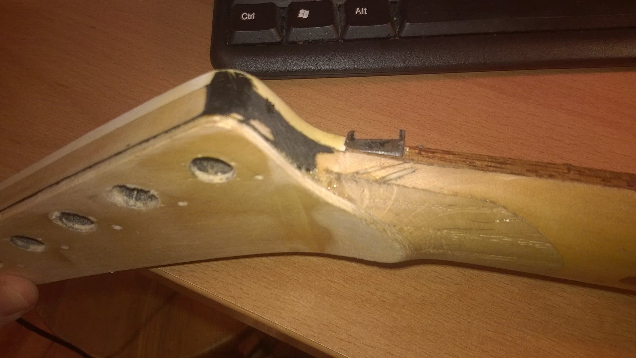 2. Jest jakał szansa żeby zdjęę podstrunnicę bez zdejmowania progów? Razem z tym gryfem wpadł w moje ręce stary Mayones z odchylonę główkę, która chyba się odkleiła i zamiast tego ktoł wstawił sklejkę :/