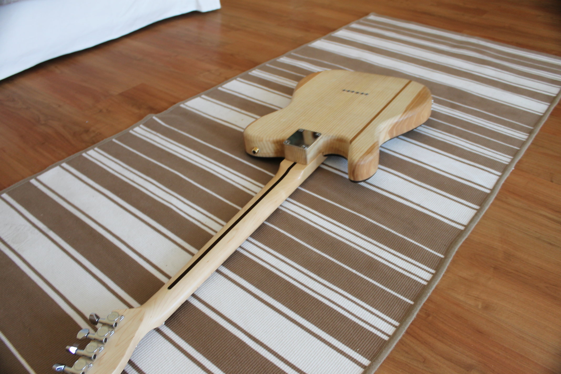 Podstrunnica faktycznie jest klejona, ale to nie jest mój wymysł. Z braku narzędzi byłem zmuszony kupię gotowy. Na to się przekłada równieżĂ płytka z logo na główce. Co do olejowania, to gitara była pokrywana dwa razy olejem bona oil, a po kilku dniach od położenia drógiej warztwy została zapolerowana. Olej nakładany bawełnianę szmatkę.