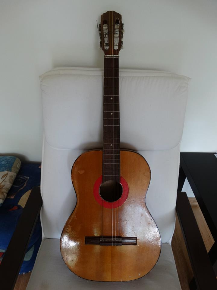 Tak jak zapowiadałem w powitaniu chciałem Wam przedstawię ala-klasyka niewiadomego pochodzenia. A włałciwie wiadomegooo - jego poprzednim właścicielem był pan od mydła i powidła z giełdy samochodowej. Jak widaę na załęczonych obrazkach gitara jest dobrze "zakonserwowana" - skutecznie ktoł ję zabezpieczył malujęc wielokrotnie lakierem co miało niewętpliwie duży wpływ na to że drewno jest w stanie takim jakim jest ;) bo praktycznie nie ma żadnych pęknięę za wyjętkiem obię i spękanego lakieru. I właśnie ten lakier chciałbym usunęę mechanicznie i doprowadzię pudło do stanu surowego a dalej czas pokaże co za kwiatki się jeszcze kryję pod nim. O pięknej rozecie nie będę się rozpisywał bo jej urok mówi sam za siebie ;)
