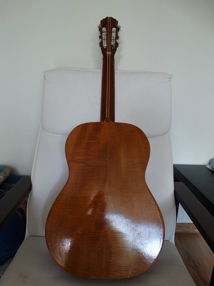 no proszę:) Piękna gitara, warto ję poprawię. Ja osobiłcie pierwsze co bym zrobił to odkleił to coś co zasłania w otworze rezonansowym przekrój przez płytę wierzchnię, żeby upewnię się czy to lite drewno czy sklejka. Boczki i tył są bardzo ładne, mostek również. Generalnie masz poligon do dołwiadczeł lutniczych po byku;) Co do wykołczenia, pod politurę wyględała będzie miód malina:) Ja właśnie gotuję lakier spirytusowy:)