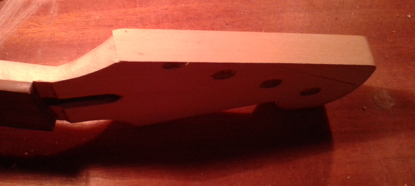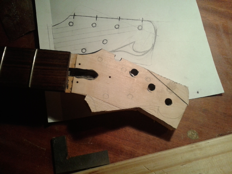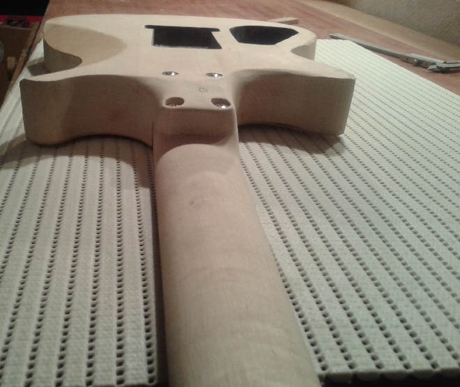 Kształt korpusu jest na prawdę ok. dla oka, ładnie te rogi się prezentuję, mi trochę przypomina stylistykę gitar basowych, trochę. Główka jest oryginalna. Minus za fornir - wiem, że z bólem serca, ale tak wyszło:) Mi zawsze fornir będzie przypominał meble. Może lepiej na heblarkę ję i dokleisz top z litego drewka? Dłutem posługujesz się widaę bardzo sprawnie, dorzeęšłbisz tu i tam? pomyłl.