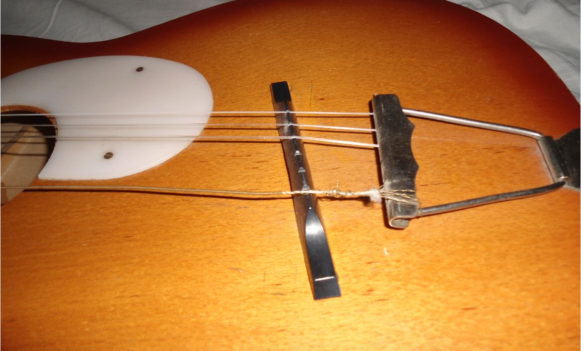 Znalazłem ję w muzycznym piekle, klasie muzycznej w podstawówce i wymieniłem swoje ukulele dla dzieciaków za to. Nauczycielka mówiła, że gitara ma około 40 lat, wewnętrz przetarta nalepka Defila. Wyględa jakby był to akustyk ale wymiary wskazuję bardziej na klasyka, spotkałem się z okrełleniem "wzmacniany klasyk" który teoretycznie może wytrzymaę metalowe struny. Bez zerowego gitara ma 19 progów. Na całołci gruba warstwa poliuretanu