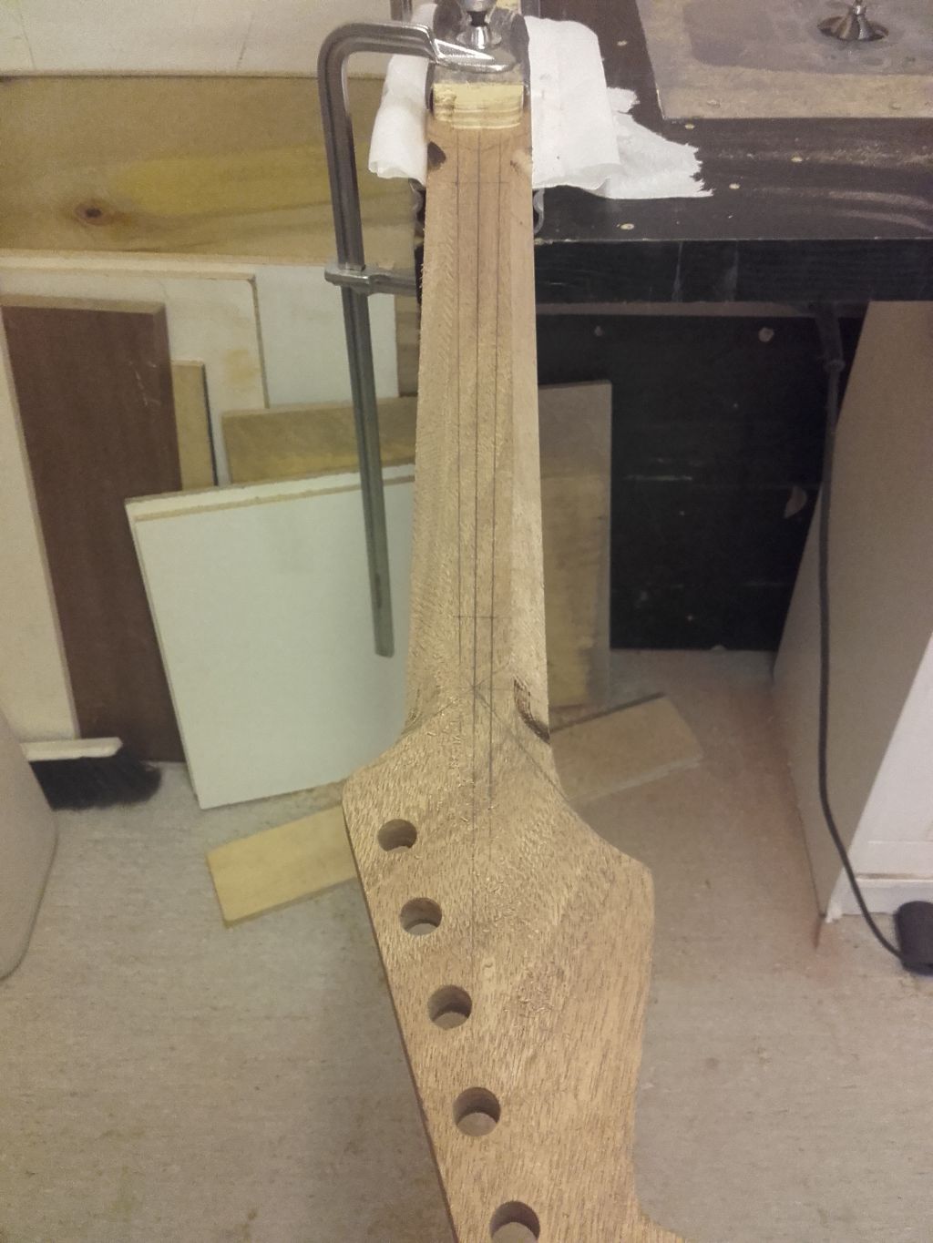 Wczoraj tak na szybko przed szampanem wpadłem do pracowni trochę postrugaę. Pod narzędzia poszedł gryf.