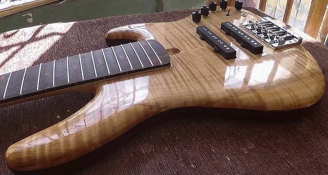 Kilka fot modelu , ktory sie najlepiej sprzedaje. Ten egzemplarz ma korpus z andiroby w srodku , po bokach padouk , linia wenge i top z klonu. Gryf klon z przklejkami i podstrunnica wenge z markerami z padouka.