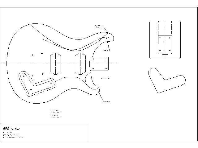 Zamieszczam rysunek Gibsona Les Paul'a wraz z rozmieszczeniem komór (nazywanych rezonansowymi ) w korpusie. Plik w formacie .pdf (wektorowy), wydruk w skali 1:1 na arkuszu A0.