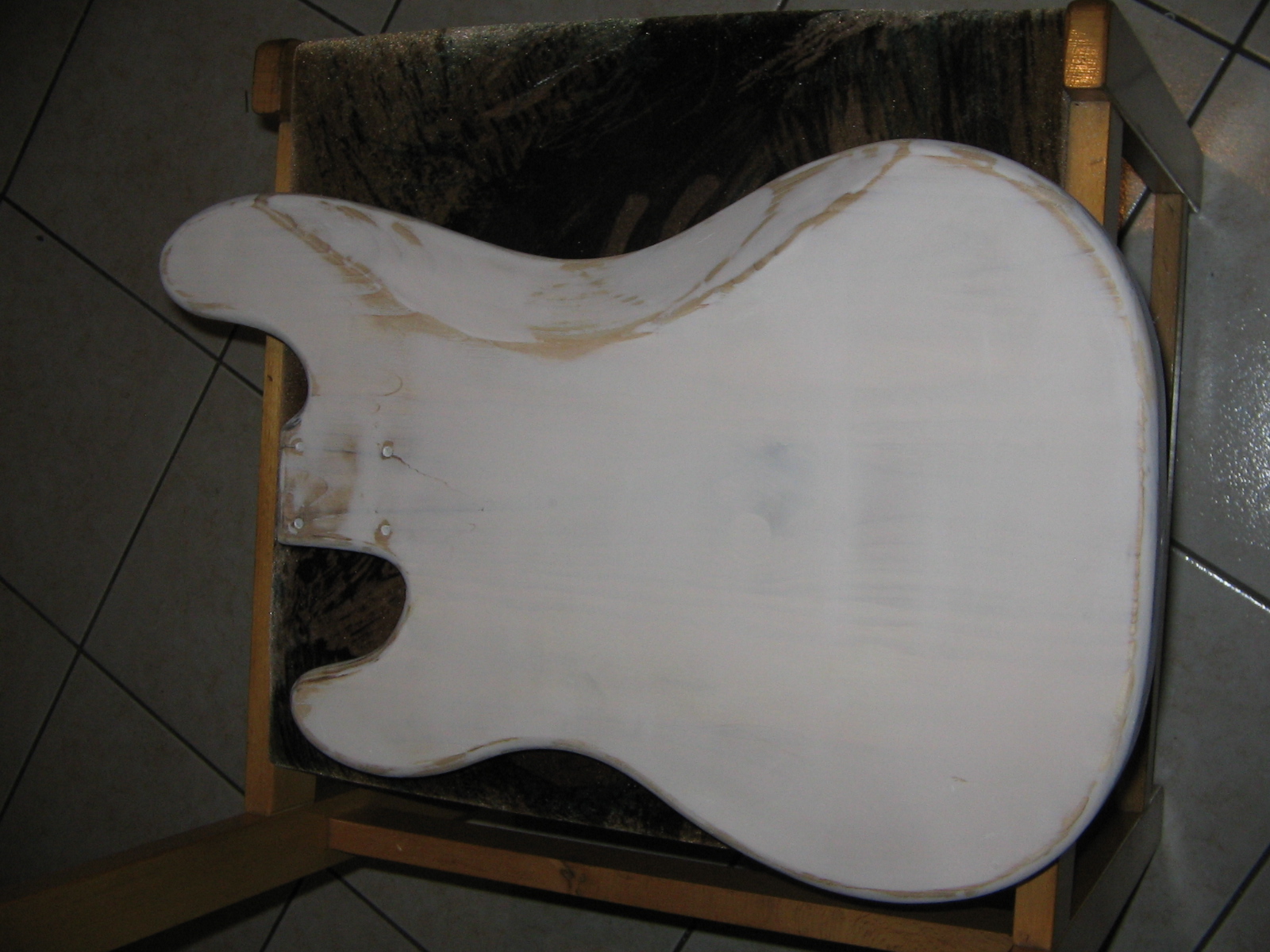 Tutaj gryf po pierwszym malowaniu lakierem podkładowym: