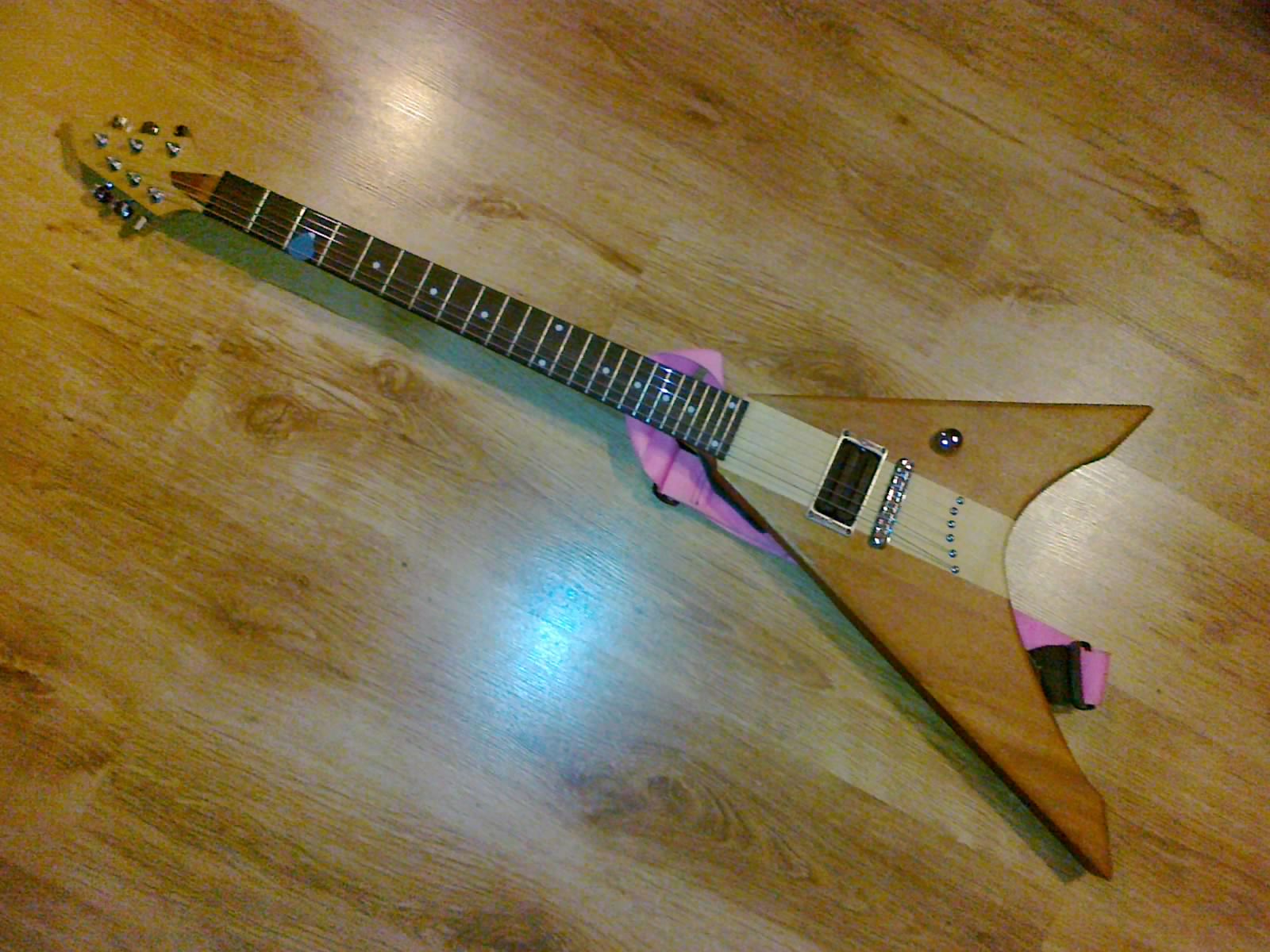Gitara jest przeznaczona do Sieczki strojona na C wiec volum ma pushpulla (series/parallel) i to mi starczy. kształt oparty na ibanezie xiphos bez przodu:P