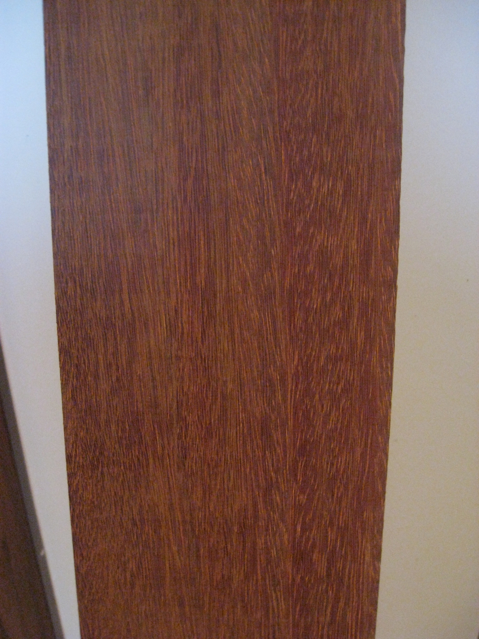 Drewno jest bardzo zwarte ciężkie i twarde. Twardsze od dębu. Wyględa na bardzo stabilne bo pomimo przechowywania go w bardzo zmiennych warunkach od bardzo wilgotnej piwnicy po super suche poddasze nie uległo wypaczeniu. Mam te drewno od około 8 lat więc jest nieęšłle wysezonowane. Po struganiu ma 150cm dł. 13cm szer. i 7mm gr. Może ktoł bardziej obeznany potwierdzi moje rozpoznanie co do gatunku drewna. Druga proęšłba to żebyłcie się wypowiedzieli co myłlicie o nim jako materiale na podstrunnicę, bo przy dobrym rozmierzeniu