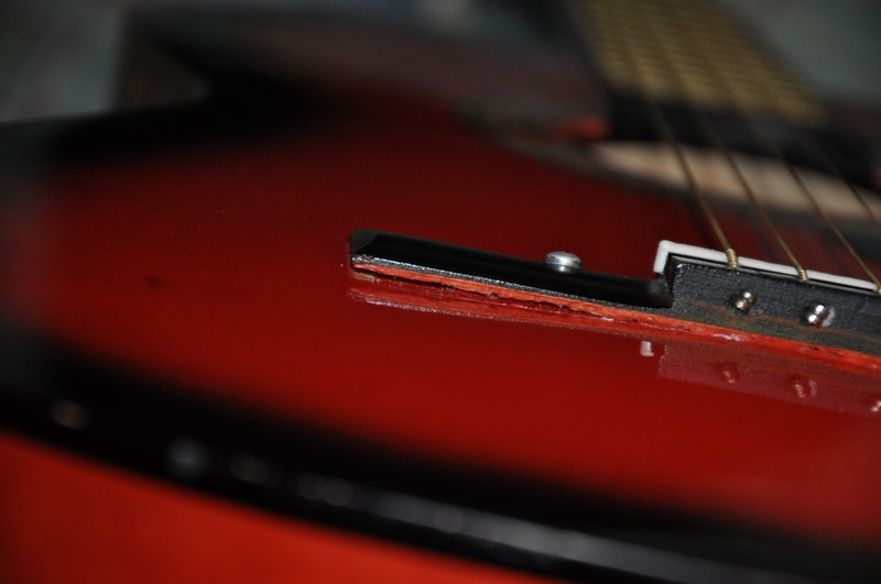 Widaę wyraęšłnie wybrzuszenie za i z boku mostka, a to skutek działania wilgoci, czyli niewłałciwe przechowywanie sprzętu. Możliwe, że trzeba będzie przeprowadzię inspekcję wnętrza, bo może pękło któreł z żeber?