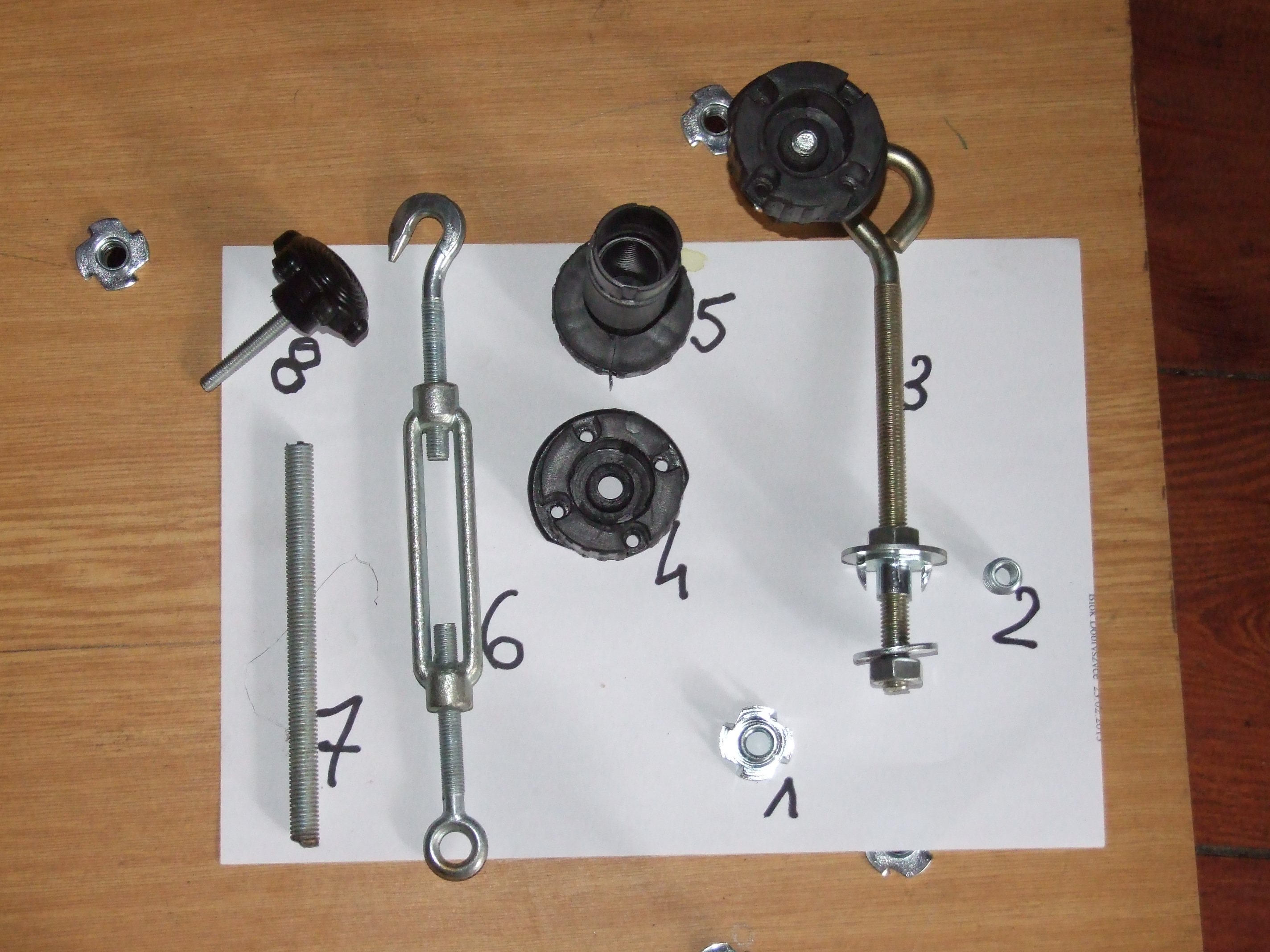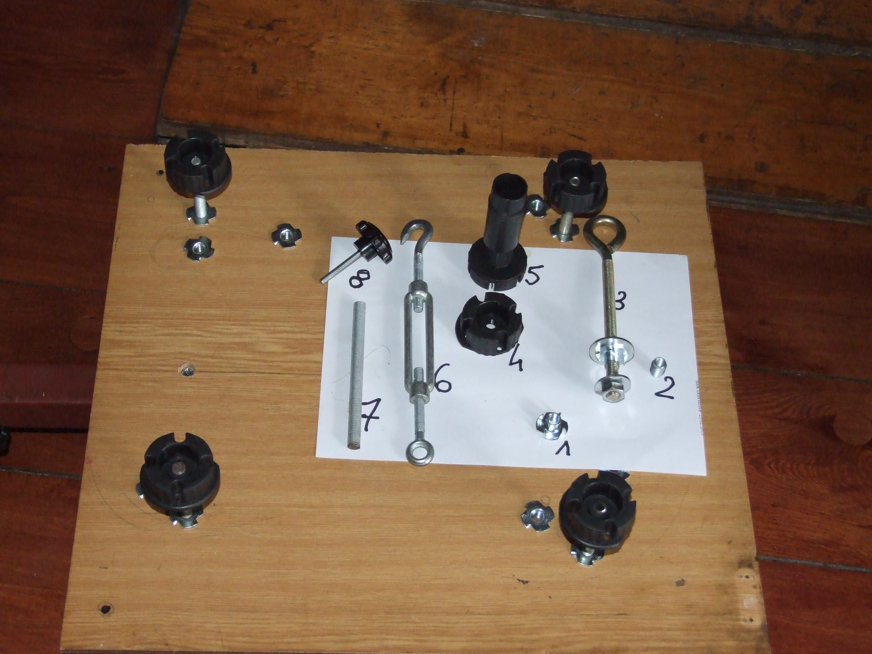Podpory pod całołę do postawienia na stole itp stanowię nóżki meblowe chromowane z regulację. Podpory na desce są wykonane z wykorzystaniem nóżek meblowych plastikowych majęcych element z gwintem M10 (0,50 zł/szt.)