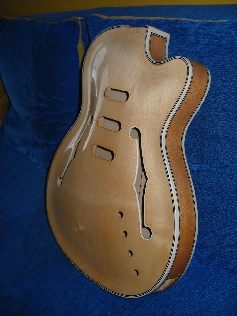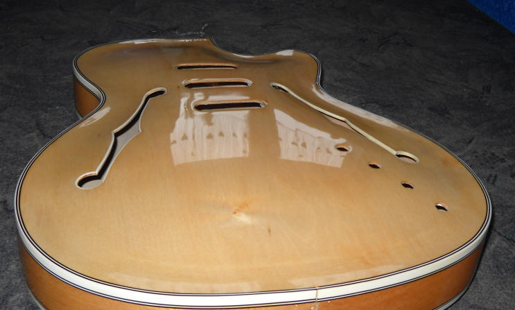 Stary lakier usuwałem podgrzewajęc go a potem delikatnie szlifierkę oscylacyjnę i poszło gładko. Oczywiscie w jednym małym miejscu na górze koło gryfu też mi wyszło przytarcie ale jest praktycznie niezauważalne.Potem lakier poliuretanowy Domalux do parkietów 2 warstwy i na kołcu szlif paierem od 600 do 2500 i polerka.Swieci jak lustro.Oczywiscie po połozeniu ostatniej warstwy lakieru czekałem z 2 miesięce zeby sie lakier odpowiednio utwardził i dopiero się bawiłem w polerowanie