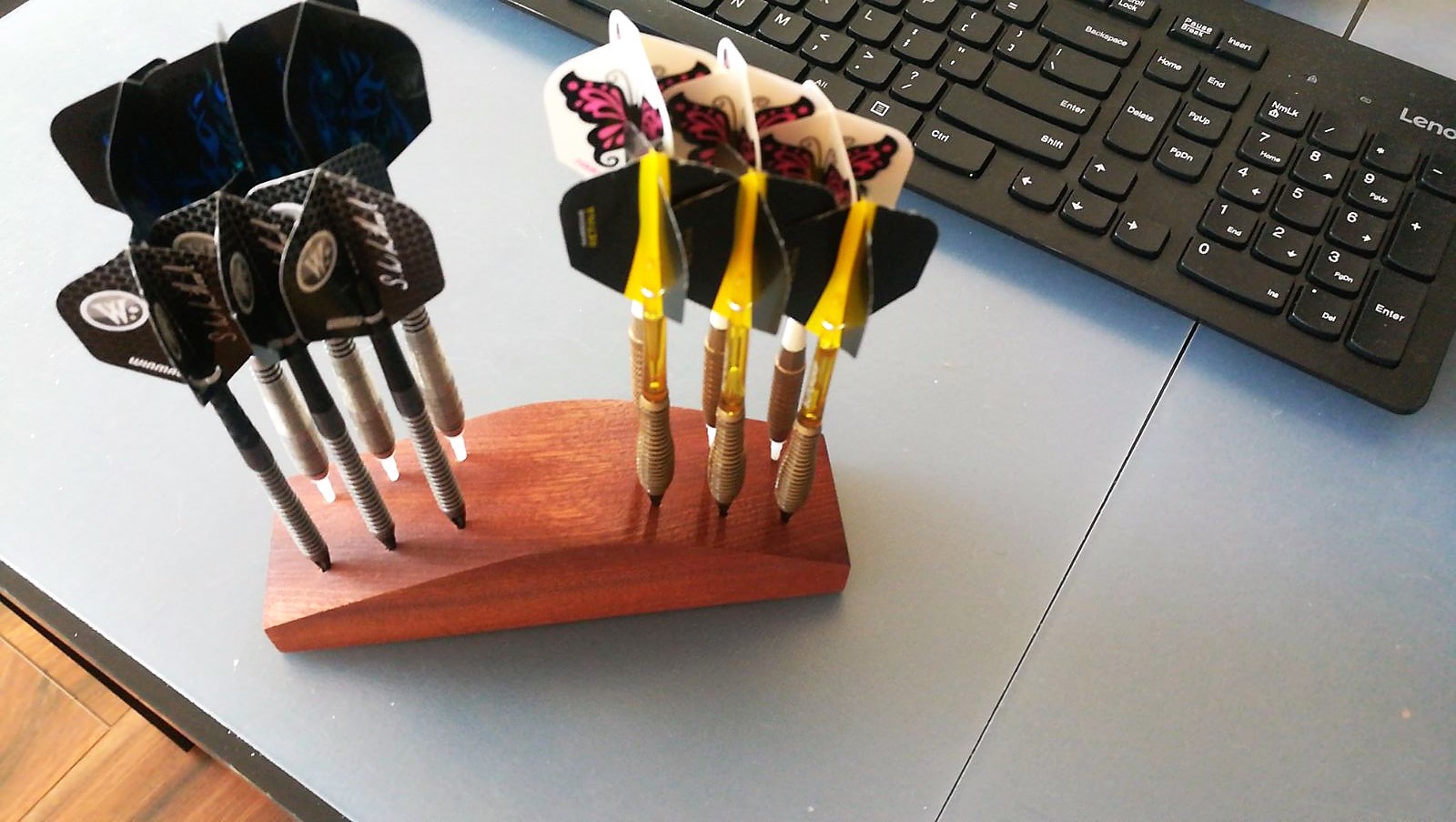 U mnie standardowo setupy i przeróbki gitar. Oprócz tego ponieważ jestem też darterem porobiłem różne takie podstawki do lotek, ringi ochronne wokół tarcz z liny dla siebie i znajomych, futerały do lotek etc..