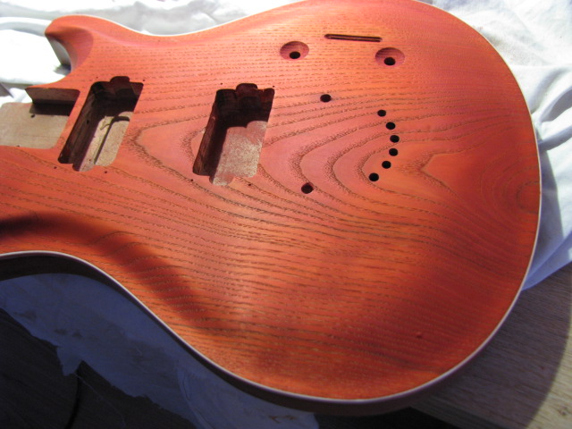 Fotki robione komórkę, więc nie najlepszej jakołci. Gitara tera odleży swoje, lakier sądzie, jeszcze raz wypełnię pory i warstwa finalna.