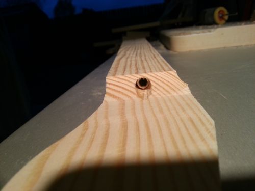 Nie potrafię wykonaę wyjłcia rowka na pręt na zewnętrz. Gryf jest jednoczęłciowy a regulacja ma byę przy główce. Wykonałem Jig który powinien pomóc wywiercię otwór od strony główki i wycelowaę w wyfrezowany wczełniej rowek na pręt. Niestety (pewnie z powodu niedokładnołci wykonania) wiertło nie trafia idealnie w rowek. Albo jest nieco z boku albo wychodzi za płytko. Zmarnowałem już 3 kawałki klonu !!! i jestem załamany. Jedyna pociecha że deska kosztowała mnie grosze.