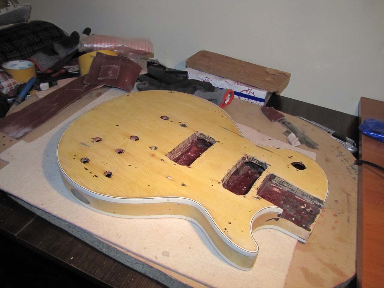 dopiero dzisiaj mogłem zajęc się dalszym usuwaniem lakieru. pozbyłem się go z korpusu. nie sądziłem, że tyle z tym roboty będzie, a to dopiero poczętek.