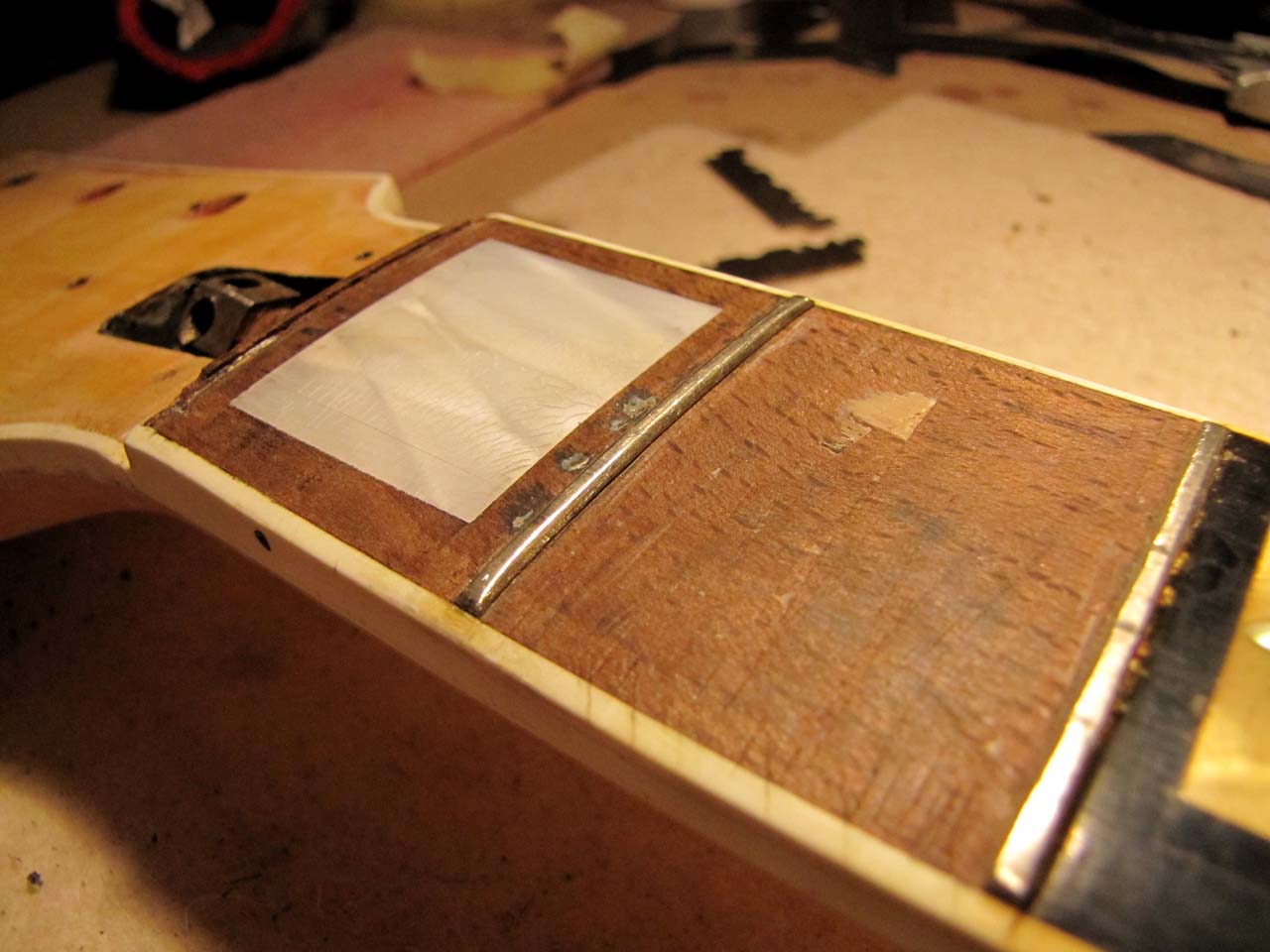 Odnoszę wrażenie, że jednak będzie potrzeba wymienię progi, a to by załatwiło usuwanie starego podbarwienia podstrunnicy i ew. pomalowanie (czy potrzebne?).