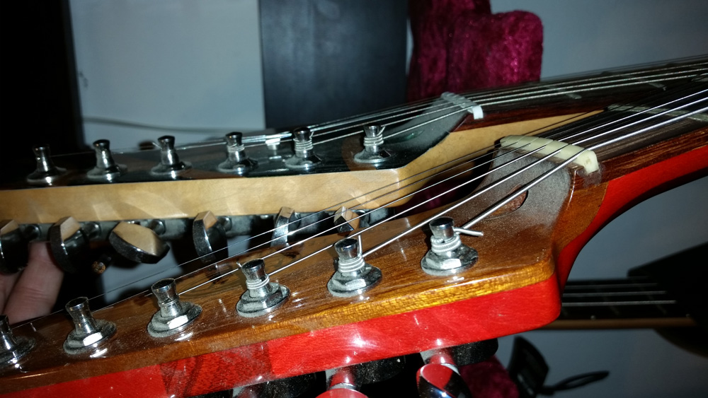 Zwróę uwagę, że po wywierceniu otworu w główce, wklejana jest w niego tulejka z ciemnego drewna, która jest niewiele większej łrednicy niż klucz regulacyjny - nie ma tam możliwołci wciskania klucza pod kętem, po skosie.. praktycznie otwór na klucz musi byę w osi nakrętki. Chyba, że Twoja wizja jest inna i zakładasz dowolne odstępstwa od pierwowzoru, czyli gryfu strata i wykonasz co tam sobie zaplanujesz.
