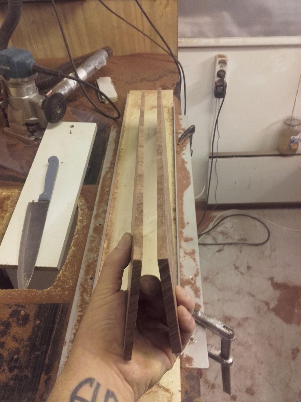 W sumie to mógłbym wrzucię zdjęcie butelki oleju i papier. Głaskam i głaskam. Ale żeby sprzęt nie załniedział to sidełko do siódemki wrzoraj strugałem i kawałek bubungi rozcięłem. Bedzie do jakiejł kanapki na gryf i podstrunnica, byc może do basu.