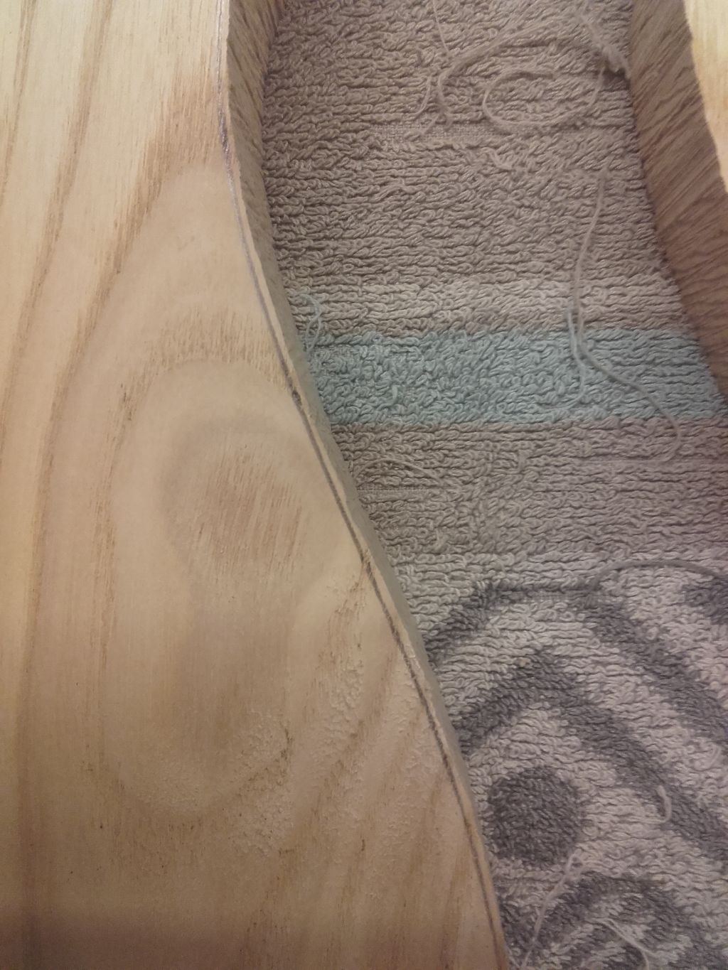 Co do spasowania przykrywki. Po prawej stronie słoje się trochę rozjechały. Nie przypuszczałem, że na różnicy 14 mm słoję tak potrafię zmienię bieg.