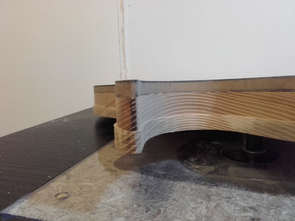 Rogi po pierwszym przelocie. Z obawy przed wyrwaniem zbyt wolno przesuwałem materiał co pozostawiło lekkie przypalenie.
